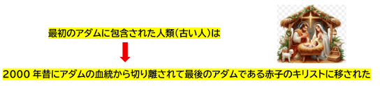 ②人類は最初のアダムから最後のアダムであるキリストに移され包含された